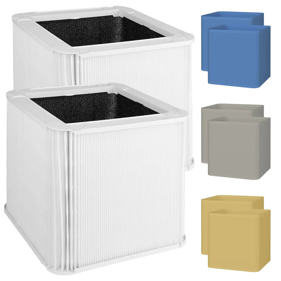 XBWW 2 Packs 211+ Replacement Filter Compatible with Blueair Blue Pure 211+ Air Cleaner Purifier Foldable H13 True HEPA and Activated Carbon Replacement Filter with 6 Washable Cover Pre-Filters